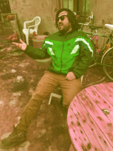 TONY GERANNO est naît a Bordeaux, membre de plusieurs groupes punk, pop, folk ou étranges ( Épais, (Rires), Bizmiz, Moloch/Monolyth, Sin Sol, Les Conservatoires… ). Depuis 2023 il joue seul avec quelques trucs posés sur des pieds de synthé: un synthé, des pédales, à mettre en branle autour de la voix et de ses véhicules: les textes, hurlés, chantés, bavés, chialés. On le retrouve également au dos de certains disques en tant qu’enregistreur et mixeur, notamment pour Chocolat Billy. Il a publié deux recueils de poésie introuvables. Avec Éric et Joahnn il forme le groupe Aragnes. Messin depuis deux ans, il est cette année suivi par la BAM de Metz dans le dispositif IMPULSE. Son nouveau disque, « Gât Mort », du nom d’une rivière qui rigole dans les landes girondines, est sorti le 15 mai 2025.
